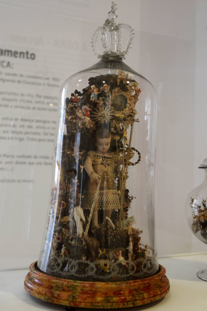 Observações: Manga de vidro que contem o menino Jesus e a criação do Homem.